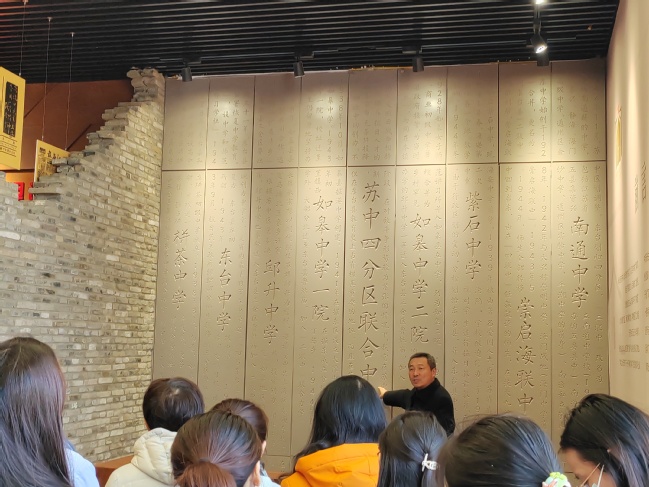 在三仓烈士陵园,东台市人民医院教学点的师生共同为革命先烈敬献鲜花,在重温历史中寄托无限哀思,感悟革命精神,表达对先辈的崇敬之情。随后,师生们来到黄海森林公园,通过参观党风廉政教育展馆,聆听黄海森林公园发展历程,沉浸式感受“艰苦奋斗、科学求真、守正创新、绿色发展”的林工精神和廉政文化,接受了一次深刻的思想政治洗礼。在“四联中”历史展示馆中,一幅幅历史图片和一份份文献资料,伴随着讲解员声情并茂地解说,带领师生们重温了革命先烈筚路蓝缕、不畏艰难的峥嵘岁月。最后,师生们前往黄逸峰故居开展研习活动。于建秀老师现场为同学们授课,她结合黄逸峰将军的英雄事迹,引导同学们感受老一辈革命家坚定的理想信念和大无畏的革命精神,使学生情动于衷、心有所悟,进一步坚定理想信念,传承红色基因。