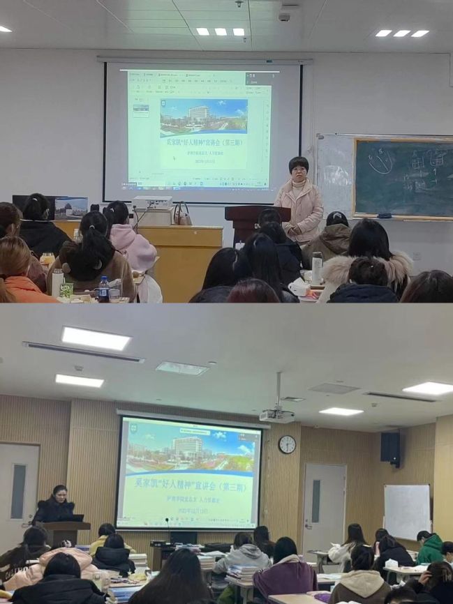 为大力培育和弘扬社会主义核心价值观,深入推进榜样引领作用,进一步营造崇尚好人、学习好人、争当好人的浓厚氛围,护理学院党总支于12月13日举办奚家凯“好人精神”宣讲会。本次宣讲会线上线下同步进行。护理学院党总支副书记吴君、全体辅导员及2022级临床班全体师生参加活动。活动由党总支书记魏志明主持。