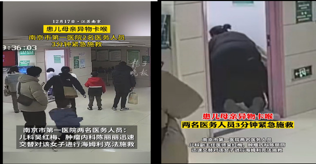 近日,省内多家媒体报道就“南京市第一医院医生利用海姆立克急救法成功施救异物卡喉患者”进行相关报道。被救患者为当天儿科候诊区一位患儿的母亲,因进食时噎住导致气管堵塞。一名儿科医生迅速上前施救,此时,一位患儿的家长也飞奔进诊室,接力施救,最后成功帮助患者脱离危险。事后得知,这位帮助施救的患儿家长是南京市第一医院肿瘤内科的主管技师陈丽丽。