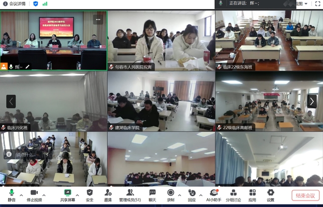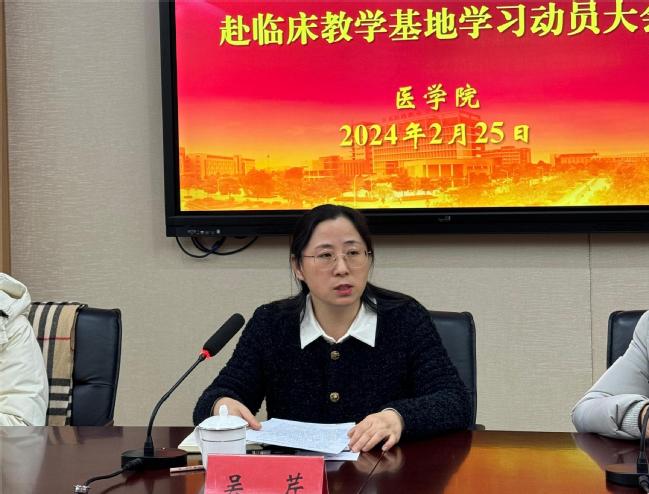 为充分发挥“医教协同,一体双元”人才培养模式的作用,更好地培养守护基层人民健康的医疗卫生人才,2月25日下午,医学院在学术会议中心第五会议室召开2022级临床医学、口腔医学技术专业学生赴临床教学基地学习动员大会。校党委委员、副院长吴芹,学生工作处、保卫处、医教协同办公室相关负责人,医学院在盐班子成员、临床教学基地科教科负责人、2022级校内外专兼职辅导员、驻点教师及2022级全体学生通过线上线下方式参会。会议由医学院党总支书记叶宁主持。