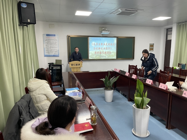 3月1日下午,马克思主义学院召开《大学生职业发展规划与创新创业指导》教材编著工作推进会。马克思主义学院直属党支部书记、教材主编周文超出席会议,全体编委老师参加会议。