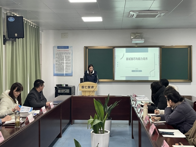 医学院辅导员刘原平以“面试技巧与能力培养”为主题,从说教材、说学情、说教学目标、说教学准备、说教学过程等方面进行说课分享。她结合学生特点,通过案例导入、视频教学、小组研讨等进行课程设计,将课程思政教学元素融入其中,创新教学方法。随后,与会人员就教学过程中遇到的问题进行充分的讨论。大家结合教材和教学大纲,深入探讨教学目标、教学内容、教学方法和评价方式等内容,分享自己的教学经验和心得,相互学习、借鉴,共同探讨高效、有趣的教学方法。