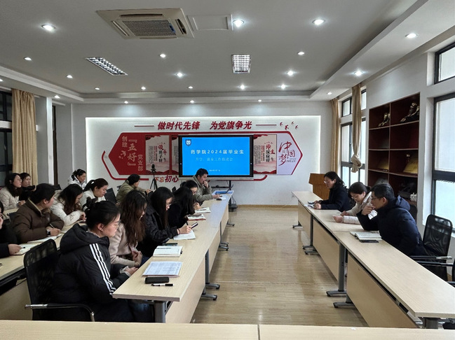 药学院党总支书记孟丽对做好毕业生升学就业工作提出三点要求:一要认清形势,提高认识。要进一步统一思想,充分认识就业工作的重要性,全力以赴推动毕业生高质量充分就业。二要讲究方法,积极回应关切。结合学生的专业特点和毕业生实际需求,加强对毕业生就业创业指导。三要压实责任,增强推进工作协同性。毕业班辅导员和专任教师要紧密配合,做好重点群体学生就业帮扶,更新“一生一策”台账,提升就业帮扶的精准性。