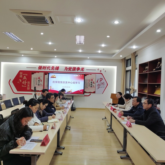 3月5日下午,药学院党总支召开理论学习中心组学习会。校纪委书记郑习武,党委委员、宣传部部长胡勇,人力资源处副处长张珍珍到场巡学旁听。药学院党总支理论学习中心组全体成员参加会议。会议由药学院党总支书记孟丽主持。