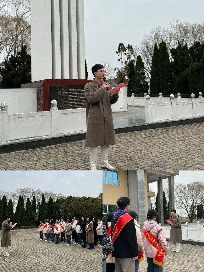 在建湖县烈士纪念馆,学生们了解革命先辈抛头颅洒热血的英勇事迹,瞻仰烈士纪念碑,重温入团誓词,接受革命精神的洗礼。团员志愿者们还自发清扫陵园道路上的落叶和垃圾,用实际行动守护革命先烈荣光。