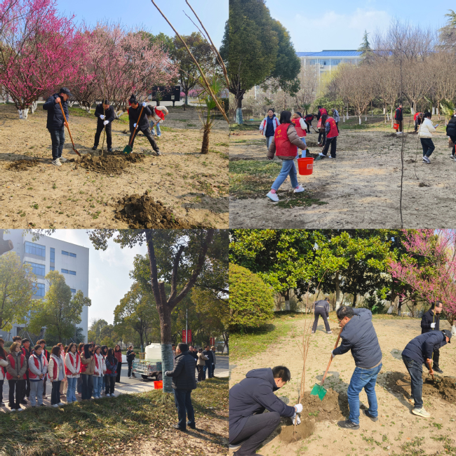 万物复苏春光好,植树添绿正当时。在第46个植树节到来之际,为深入贯彻落实习近平生态文明思想,积极践行“绿水青山就是金山银山”的绿色发展理念,3月12日下午,我校在西园开展植树活动。副院长徐成,相关部门、二级学院师生员工参加活动。