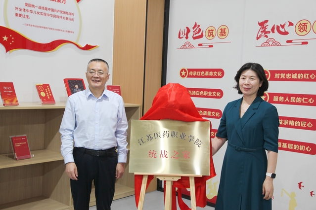 党委书记陈国忠和市政协常委、农工市委副主委、农工党江苏医药总支主委、发展规划处处长邵荣共同为“苏医统战之家”揭牌,这标志着学校统战阵地建设迈入新阶段,“统战之家”将为全体统战成员提供更加固定、便捷、温馨的活动场所和精神家园。