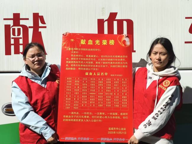 近日,盐城市中心血站专程向我校送来无偿献血“光荣榜”,对我校在无偿献血活动中作出的贡献和展现的组织能力表示高度赞赏。本次活动由公共卫生与管理学院苏医“血液银行”检验社团独立策划并承办,不仅是一次传递爱心的公益行动,也成为展现医学检验技术专业人才培养成果、弘扬志愿服务精神的生动实践。