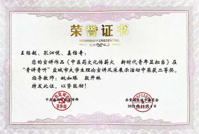在大学生组比赛中,我校学子王绍越、孔沁悦、姜佑奇的宣讲作品《中医药文化传薪火 新时代青年显担当》,聚焦传统文化传承与青年责任,展现了中医药文化的时代价值与青年一代的文化自信;孙燕、王鸣霞、王争鸣的宣讲作品《路》,以独特视角讲述时代发展与个人成长的紧密关联,传递了新时代大学生砥砺前行的奋进力量。两部作品均以深刻的主题、新颖的形式获得评委一致认可,双双斩获二等奖。