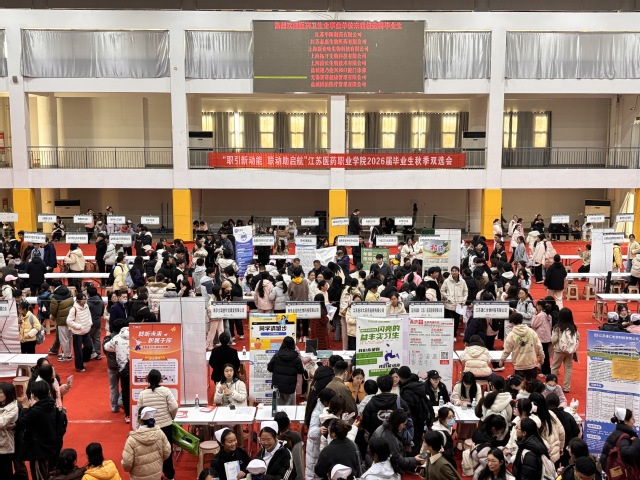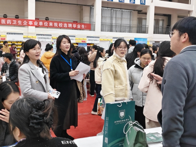 本次双选会聚焦医药卫生行业特色,邀请射阳县卫健委、东台市人民医院、大丰中医院、射阳县中医院、江苏燕舞健康养老有限公司、无锡明慈心血管病医院有限公司、江苏普信制药有限公司等百余家单位,覆盖了综合性医院、专科医院、社区卫生服务中心及健康管理机构等多个领域,为即将步入社会的2026届毕业生提供了约1900个优质就业岗位,岗位需求与学校开设的专业高度契合,实现了人才供给与市场需求的有效匹配。