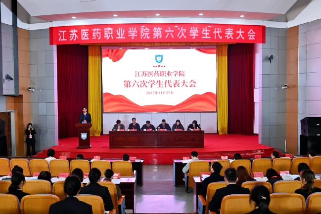 11月29日,江苏医药职业学院第六次学生代表大会在国际会议中心成功召开,来自各学院的110名学生代表参加会议。校党委委员、副院长徐成出席会议。