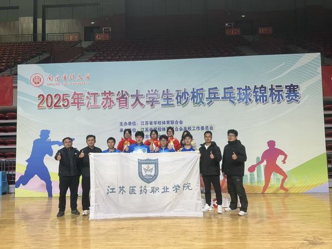 11月27日至30日,由江苏省学生体育协会主办、江苏省学生体育协会高校工作委员会承办的“江苏省大学生砂板乒乓球锦标赛”在南京审计大学举行,来自全省33所高校近300名运动员参加比赛。我校砂板乒乓球队脱颖而出,斩获2金1银,团体总分位列高职高专组第三名。
