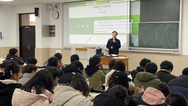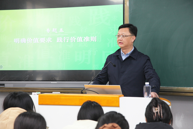 为深入贯彻落实立德树人根本任务,扎实推进新时代高校思想政治理论课建设,近日,我校领导班子成员集体走上《思想道德与法治》课程的讲台,为2025级新生讲授第四章《明确价值要求 践行价值准则》,为同学们带来了一系列兼具理论厚度与现实温度的思政课。