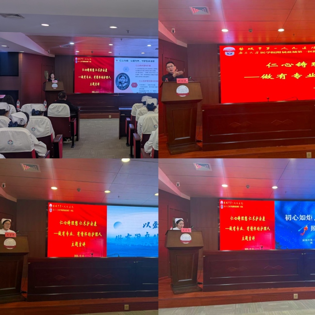 我校马克思主义学院教师朱碧云以《仁心铸理想、仁术护安康——做有专业有情怀的护理人》为题,从“仁心为根守温度”“立足平凡增自豪”“秉持初心聚合力”三个维度,结合案例生动诠释了护理职业“专业与人文共生、技术与情怀并重”的本质。马克思主义学院耿加进教授则以《青春、爱与奉献:新时代护士的使命与担当》为主题,系统阐释了“爱”与“奉献”的职业精神内核。他寄语广大学子和青年护理人要以青春为帆、以爱为舵、以奉献为桨,努力成长为有温度、有担当、有情怀的新时代护理工作者。
