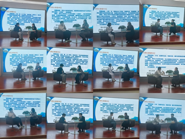 决赛分为案例研讨和谈心谈话两个环节。案例研讨以“我提问,你回答”的形式进行,重点考察辅导员综合运用理论分析问题、研判问题与解决问题的能力。赛场上,选手们根据抽签分组,围绕抽取的案例题展开深入辨析与对策研讨。一方提问尖锐切题,一方应答沉着周全,双方在思想碰撞中共同梳理问题本质、探讨解决路径、总结育人规律,展现了清晰的逻辑思维与扎实的业务积累。谈心谈话环节则通过情景模拟展开,辅导员与学生志愿者临时组队,围绕学业规划、人际交往、心理调适等现实话题展开对话。辅导员们耐心倾听、巧妙引导,在有限时间内迅速把握问题关键,以共情促沟通,以说理明方向,生动体现了日常工作中的教育智慧与人文关怀。两个环节内容覆盖全面,现场气氛紧张而热烈,选手们准备充分、应对从容,充分展现出我校辅导员队伍良好的职业风貌和专业的育人能力。