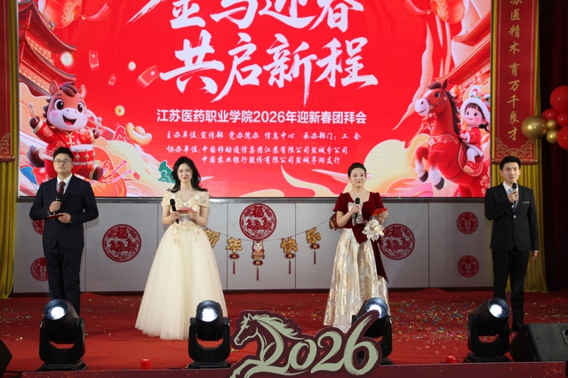 随后,党委书记陈国忠致新年贺词。他代表学校党委向全体教职工致以最诚挚的新春问候和最美好的节日祝福,系统回顾了2025年学校在党建引领、内涵发展等方面取得的丰硕成果,强调所有成绩的取得,凝聚着每一位苏医人的智慧汗水与担当奉献。展望2026年,他表示,学校将以“十五五”规划为引领,深化教育教学改革,聚焦特色鲜明的医药职业本科院校创建的重要任务,号召全体教职工同心协力、踔厉奋发,以永不懈怠的精神状态和一往无前的奋斗姿态,共同书写学校高质量发展新篇章。