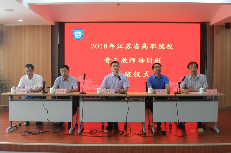 7月10日上午,由我校承办的2018年江苏省高职院校“药品安全,健康所系”教师培训班在我校图书馆七楼第三会议室举行开班典礼。我校院长乔学斌、中国药学会盐城分会秘书长陈爱年、中国药科大学工学院党委书记邬瑞斌、江苏护理职业学院药学院院长韩永红、我校药学院院长王宁出席了开班典礼。来自省内以及新疆的16所医药卫生类高职院校的参培学员和我校药学院全体教师参加了典礼,开班典礼由药学院王宁院长主持。