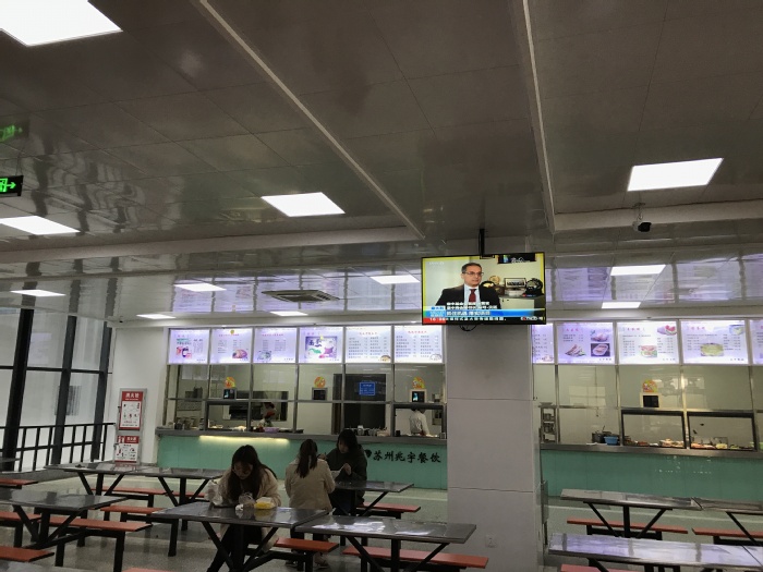2019年春学期,我校餐厅将所有监控设备更换成了高清网络监控设备,同时在各就餐大厅内增加多台数字电视,直播后厨监控拍摄内容。师生可以通过电视实时观看食堂后厨的情况,一方面增强了师生对食堂的信任度,另一方面也督促食堂经营方做好食品安全生产工作,真正实现了食品加工各环节可视化,建成了“明厨亮灶”的透明食堂。同时,餐厅内部分电视也在播放央视新闻频道内容,有利于增加大学生对新闻时事的了解,也有利于大学生培养正确的价值观和人生观。(后勤处供稿)