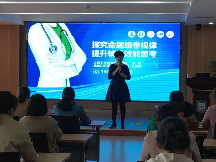 王秀玲教授的讲座主题为“探索命题组卷规律,提升辅导效能思考”,通过列举往年护士执考考题来讲解解题思路和授课技巧。讲座中,王教授运用幽默风趣、通俗易懂的语言对护士执考当中的重、难点以及考点进行讲解,专兼职教师们反映热烈、情绪高昂,使得整个讲座氛围十分的活跃。台上讲得精彩,台下听得带劲,讲座取得了令人满意的效果。