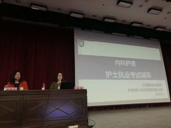 第一个主题——给学生授课。由许红和朱慧主讲,各1个半小时。许红老师授课的内容是妇产科护理中妊娠并发症的护理一章,重点介绍了5个临床常见病多发病复习和记忆、考试方法;朱慧老师则介绍了内科护理中考题最多的章节,呼吸系统。两位老师用精炼的语言讲解了疾病各考点的理解与记忆方法,并随即进行该疾病常见试题的测试,听课学生多能现场给出正确答案。