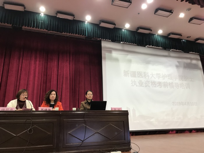 4月9日至13日,护理学院5名骨干教师王苏平、高薇、许红、朱慧、朱蓓赴新疆医科大学进行全国护士执业资格考试辅导经验交流,活动分三个主题进行,各半天时间。新疆医科大学参加听课的2019届护理专业毕业生498名,包括汉族和少数民族(维吾尔族、哈萨克族、蒙古族等)各50%,护理专兼职教师50多名参加了培训活动。