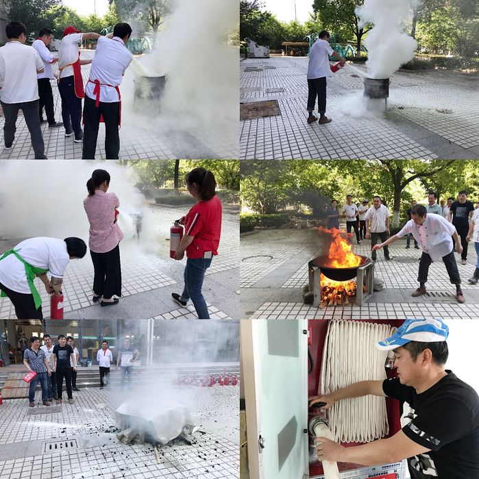 活动中,保卫处徐老师针对食堂工作的岗位性质,就火灾的主要诱因、预防火灾的措施、发生火灾的处理办法以及消防器材的正确使用等方面进行了详细讲解,并现场指导了灭火器、灭火毯及消防水带的操作方法,食堂全体员工认真学习理论知识和操作方法,在膳食科洪老师的带领下一一试用了油锅灭火棒、灭火球、灭火瓶等新兴灭火产品,亲身体验了现场灭火的各种操作步骤。