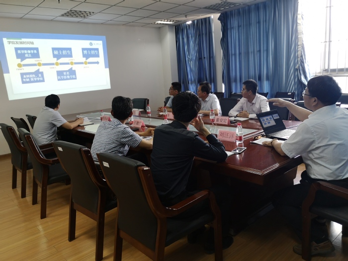 会上,首先由徐州医科大学医学影像学院党总支书记王德广介绍医学影像学院的发展历史、专业建设以及学科建设等相关内容。随后,辛春院长介绍了我校医学影像技术专业的发展历史、人才培养模式以及课程体系的建设情况。最后,双方就医学影像技术专业“3+2”分段培养方案及课程体系设置等内容进行了深入探讨与交流。