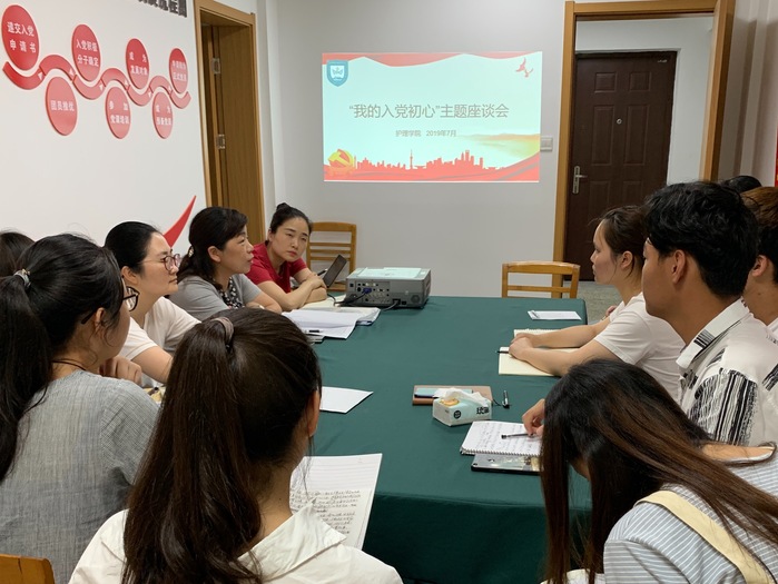 7月5日下午,护理学院党总支在学生公寓三号楼“党建工作站”举办“我的入党初心”主题座谈会。会议由护理学院党总支书记何曙芝主持,护理学院第三党支部支部委员、2018级入党积极分子、2017级发展对象等15名师生参加了此次座谈会。