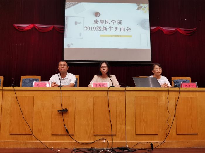 9月7日晚,康复医学院在建军校区报告厅召开2019级新生见面会,康复医学院院长张绍岚、副院长陆建霞、党总支副书记赵亮,2019级全体专兼职辅导员以及2019级全体新生参加了会议,会议由党总支副书记赵亮主持。