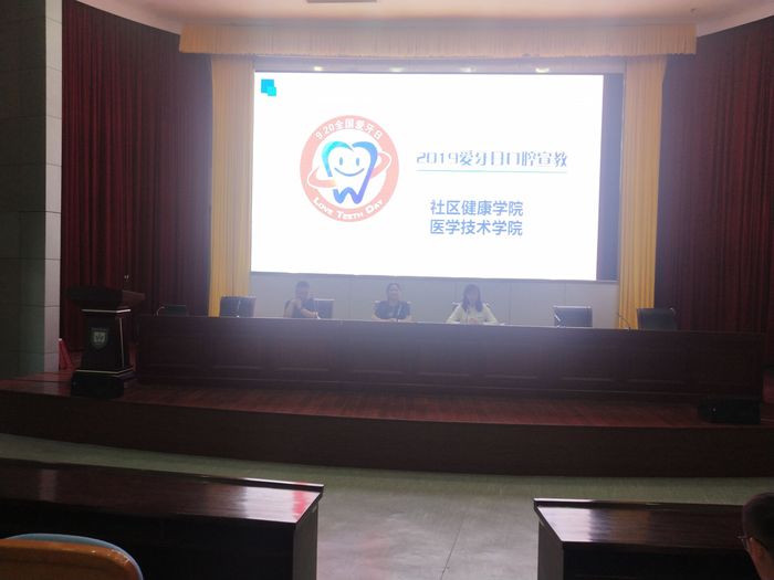 9月20日下午,在第31个“全国爱牙日”到来之际,我校医学技术学院联合社区健康学院在国际会议交流中心举办了2019年爱牙日口腔宣传教育活动。本次活动由口腔医学技术教研室主任颜成东老师主讲,医学技术学院副院长赵霄,社区健康学院副院长许凤出席了此次活动。