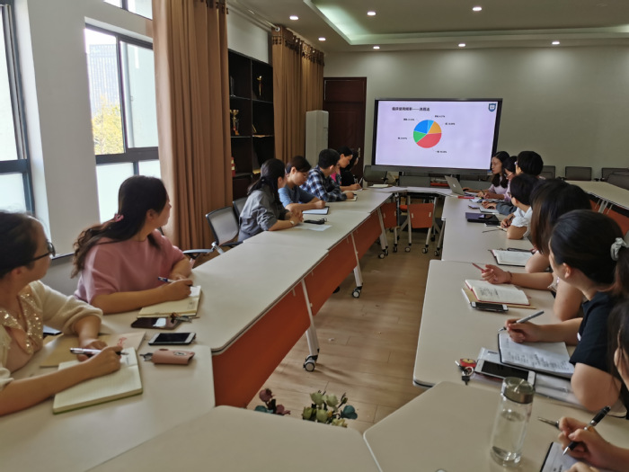 会上,栾海丽老师首先结合图表数据分析,全面汇报了《基础护理技术》实训教学情况调研报告的结果。本次调研覆盖了在北京、上海、南京、徐州、盐城等11所城市的几十家三级医院实习、就业的学生,共715人,调研内容包括:基础护理技术课程教学满意度;二十一项基础操作的临床使用频率、操作流程和临床接轨情况、操作用物和临床接轨情况及对基础护理技术教学的改进建议。从调研结果看,有88.39%的学生对在校所学《基础护理技术》课程的总体评价为满意;临床使用频率较高的操作项目依次有生命体征、吸氧、静脉采血、留置针静脉输液、各种注射法、雾化吸入等,使用频率较低的依次有温水擦浴、洗胃法、口腔护理、穿脱隔离衣等;操作流程和用物与临床接轨情况较好的操作项目依次有生命体征、各种注射法、静脉采血、吸氧、雾化吸入等,与临床接轨较差的依次有口腔护理、洗胃法、温水擦浴、灌肠法、穿脱隔离衣等项目;学生对课程的建议主要包括增加练习次数,常用操作增加考试,部分操作流程和用物需与临床进一步接轨,实训用物配备足量且及时更新。
