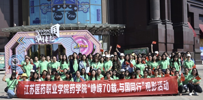 为隆重庆祝中华人民共和国成立70周年,10月4日,药学院举行“峥嵘70载,与国同行”观影活动,组织国庆期间留校学生走进影院,观看国庆献礼影片《我和我的祖国》,共同见证新中国成立70年以来取得的辉煌成就,激发学生的爱国情怀和使命担当。