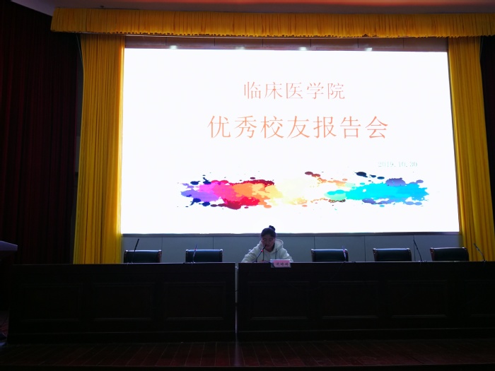 10月30日下午,临床医学院在解放校区国际会议交流中心举行优秀校友报告会。我校优秀校友凌婷婷为2019级新生作报告,临床医学院2019级全体新生及辅导员参加报告会,会议由临床医学院王培森老师主持。
