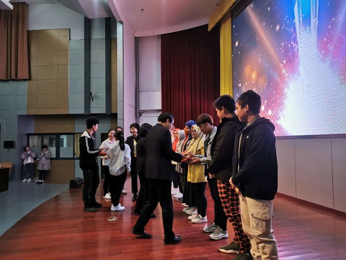 晚会现场,领导老师们还为“我在江苏追梦,我为江苏点赞”外国留学生图文微视频征集活动的获奖同学颁奖,全场师生一起欣赏了获奖作品。(国际教育学院张迅供稿、摄影)