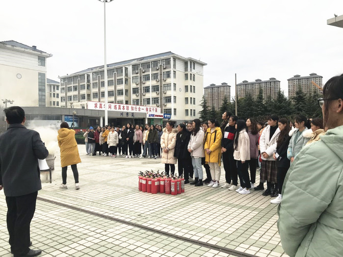 消防演练的主要内容是模拟宿舍失火,发生火灾学生如何自救逃生,熟悉消防器材的使用和如何灭火等。演练现场,学生用湿毛巾捂住口鼻,弯腰迅速有序到空地集合,清点班级人数,与班主任电话告知具体情况。同时,保卫处老师与学生进行了消防知识和灭火器的使用讲解,学生代表亲自操作使用灭火器。
