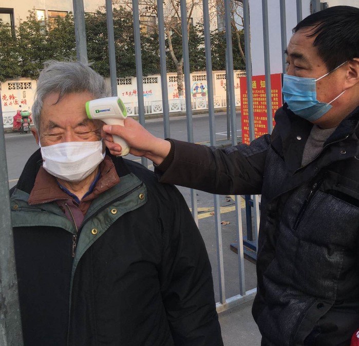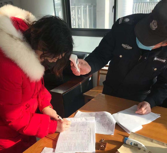 为进出建军校区家属区老师测量体温