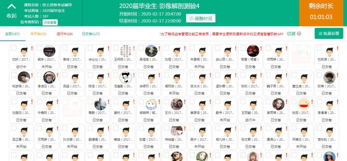 医学影像学院师生守初心、担使命,以高度的政治责任感,将线上网络教学活动作为当前防控疫情的重要工作,全面推进网络教学服务,多措并举,最大限度地减少了此次疫情对教学工作的影响,但网络教学实时督导、直接交流互动等固有弊端无法回避,医学影像学院全体师生将在学院总支和行政的带领下集聚智慧,不断创新,实时改进,砥砺前行,保质保量完成线上网络教学任务,以实际行动投入疫情防控工作中去。(医学影像学院董安定供稿)