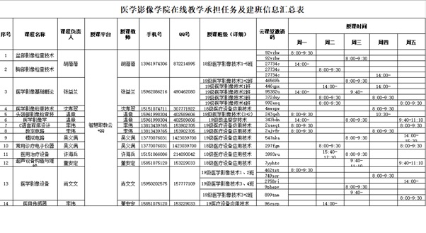 医学影像学院在线教学承担任务及建班信息汇总表