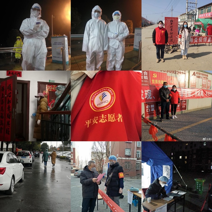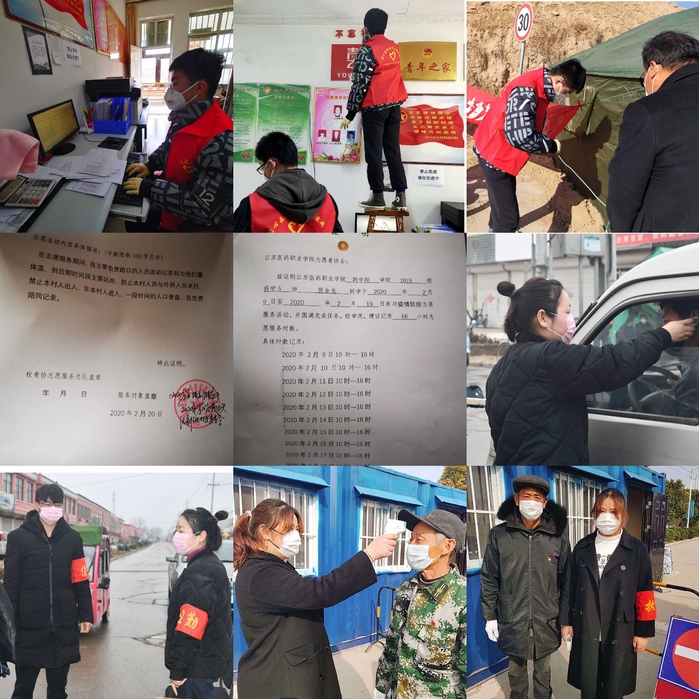 2019级药学海本班的田梦忻,每天看着父亲坚守在村口哨卡监测点,自己主动向村委会申请加入卡口的防疫工作,与父亲一起在进村路口卡点参与值守,协助村里工作人员进行体温检测、信息登记等,积极向村民宣传疫情防控知识,每天投入到工作中的时间将近10个小时。2019级药学3+2班的张陆虹,家在泰州市医药高新区,做好安全防护的她,每天跟着社区工作人员入户排查,为居民发放防护宣传单和居民出入证。2018级中药2班史佳铭,在溧阳北高速路口做志愿者,为来往车辆和人员进行登记,测量体温,常常一天要工作8个小时以上,有时站岗到凌晨。2019级药学5班的张金龙,在宁夏回族自治区吴忠市同心县做志愿者,与当地防疫人员一道宣传病毒知识,贴宣传标语,发病毒防护宣传单,劝散聚集的村民,告诫村民不要外出,叮嘱村民正确佩戴戴口罩……在这个特殊的春节假期里,像他们一样投身家乡抗疫志愿服务工作中的学生还有很多,他们“逆行”而上,把爱与善、光与热,传递给每一个人,为坚决打赢疫情防控阻击战添砖加瓦。