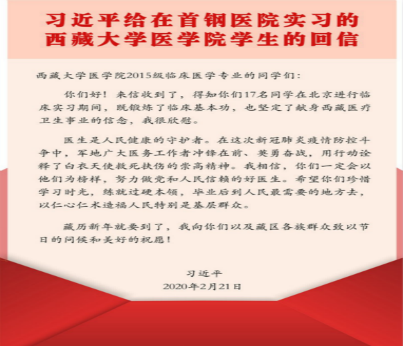 习总书记给西藏大学医学院学生的回信