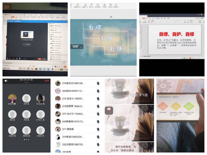 药学院各班级通过“钉钉”、“腾讯会议”、“QQ群直播”等网络平台面向学生开展“共抗疫情 爱国力行”网络主题班会。为达到预期效果,各班级积极准备,认真筹划,查阅相关资料信息,围绕主题组织开展了如:“敬畏生命·共战疫情”、“携手迎春·共克时艰”、“自律、自护、自修·我们在努力”等为题的特色班会。让同学们进一步明确现阶段,最重要的任务一是加强自律,充分认识“居家也是战斗”,于己担责、于国担当;二是加强自护,护己也要护人,充分认识“保护自己就是保护社会”,增强自我防护意识和能力,养成讲文明、讲卫生、讲科学的健康生活方式;三是加强自修,修心也要修身,充分认识“隔离病毒,但不要隔离对科学和社会的阅读”,在抗击疫情的严峻考验中成才成熟,加深对人生、自然、法律、道德等思考,按照学校有关要求开展网络学习。