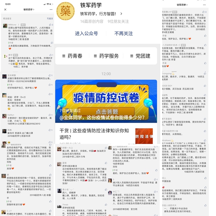 “铁军药学”公众号学生留言