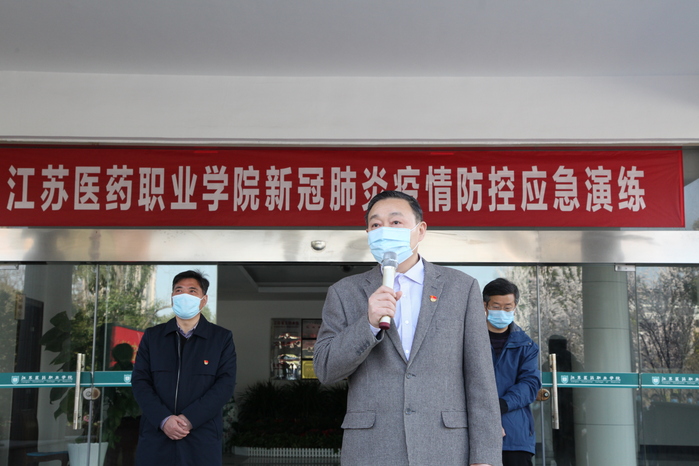 在应急演练开始前,校党委书记郝达富作动员讲话。他肯定了自疫情爆发以来全校上下为校园安全稳定所做的工作,并指出当前学校疫情防控工作不能松懈,要周密筹划,统一部署,“从严、从细、从实”落实防控措施,做好师生开学返校前后的准备工作。随后院长陈国忠宣布演练正式开始。