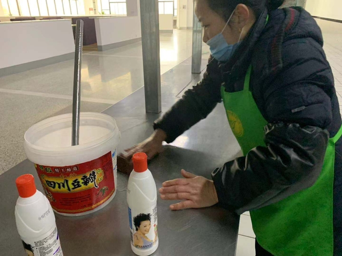 加强疫情防控期间食堂的卫生安全管理。食堂值班人员每日检测体温,做好个人卫生和防护工作;严格把控食材采购关,保障稳定采购的同时,严格做好每个批次的食材检查,保证食品安全;后厨操作区域、桌面、地板等,每日湿式擦拭消毒,保障食品环境安全。