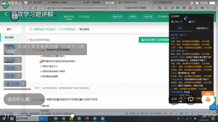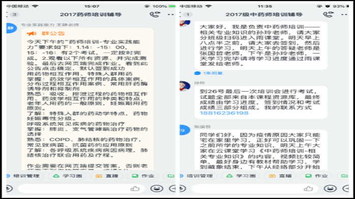 受新冠肺炎疫情影响,药学院2017级学生自2月份开始暂缓实习。为了保证疫情防控期间实践教学进度和教学质量,药学院根据教育部、教育厅等有关文件要求,充分利用药学在线教学资源平台和在线教学工具,自3月9日开始开展线上授课和线上学习的在线教学活动,为学生毕业考试和后续从业及职称考试打下基础。本次线上辅导由各专业带头人组织教研室老师线上讨论制定辅导方案,确定了周一至周四药学专业、药品生产技术专业和药品经营与管理专业学生学习药师培训课程,中药学专业的学生学习中药师培训课程。教学管理办公室认真制定课表,为同学们建立线上钉钉班级群,任课老师们精心备课,为学生精选习题,结合考点开展讲解答疑,同时结合国家药学资源库的相关课程有序开展。每周五由药学院施秦博士为同学们开展毕业设计线上辅导,施博士的讲座生动有趣,提升了不少同学对科研和毕业设计制作的热情。