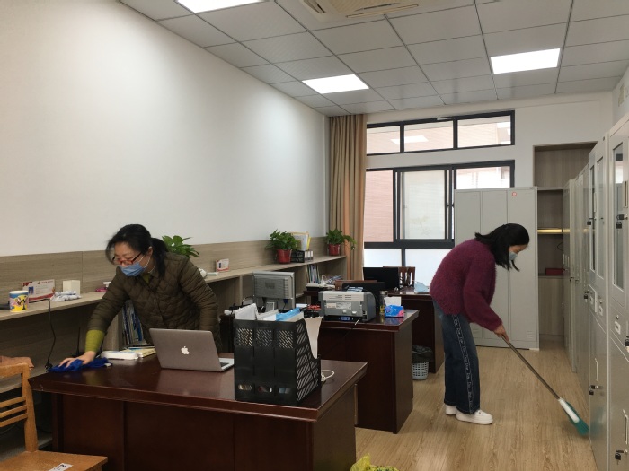 4月13日上午,全体教职工准时返校,在做好自身防护的同时,对办公室和实训室内外进行了大扫除活动。活动中,教师们本着“不漏掉任何一个死角”的原则,拿着扫把、拖把、抹布等各种工具清理卫生死角等,对办公室和实训室的卫生进行了彻底的清理工作。