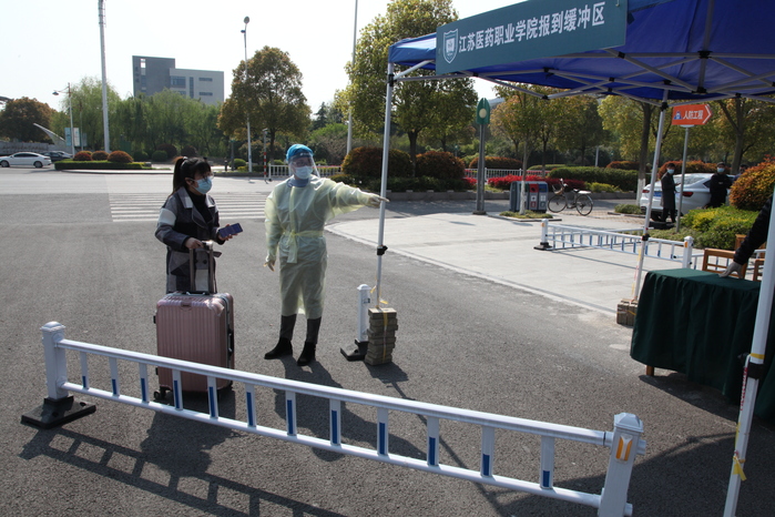 本次演练采取情景模拟和现场演练相结合的方式,按照“苏康码”核验、身份验证、健康检测以及发热人员处置等流程开展。学生工作人员按照学校要求对入校学生进行第一道把关--“苏康码”核验,校医在临时隔离点待命。持绿码的学生依次进入自动测温通道,核验身份后体温正常的学生方可入校,随后在公寓进行体温复测。同时,现场还对出现体温异常学生的情况处置进行了模拟演练,温度复测、送医就诊、隔离观察、消毒处置等各环节有序顺畅,各有关部门分工明确、配合密切、行动迅速。