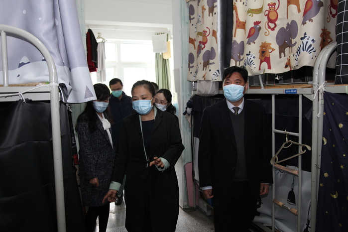 朱岷主任一行详细了解我校学生返校工作方案,全流程体验和检查了学生报到的基本程序,与报到的学生亲切交流,叮嘱现场的工作人员做好个人防护,注意规范各个环节的工作流程。随后,深入学生宿舍、食堂、校园超市、医学观察区等重点区域进行检查,全面了解学生返校后的健康监测、安全卫生管理、防疫物资储备、生活保障等各项工作情况。
