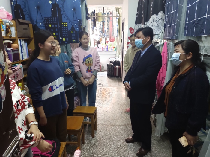 为掌握返校后学生的思想及生活状态,确保学生返校后疫情防控工作科学、规范、到位,4月21日上午,由学校副院长王辉带队,护理学院党总支书记何曙芝、副书记王俊峰以及部分辅导员老师深入解放校区的学生宿舍,关心了解返校学生的学习、生活等情况。