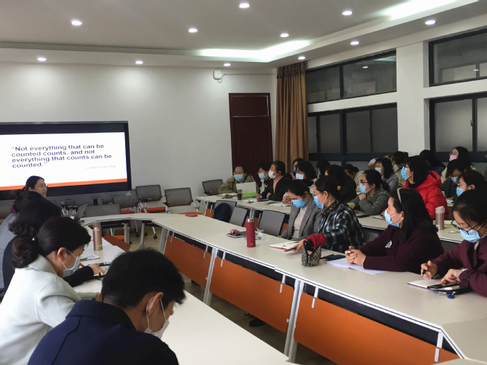 此次业务学习的主讲者为护理学院赴东方大学攻读护理哲学博士在读教师孙海燕。孙海燕老师此次汇报交流的主题为《质性研究在护理学中的应用》。孙海燕老师围绕“什么是质性研究”、“为什么要做质性研究”、“如何去做质性研究以及如何将质性研究方法应用于护理教育”四大主题展开,深入浅出地分析讲解了质性研究的定义、质性研究的研究方法等内容。同时,孙海燕老师结合自身质性研究的课题,和大家进行了分享和互动,使大家对质性研究有了更加深刻的理解与认识。
